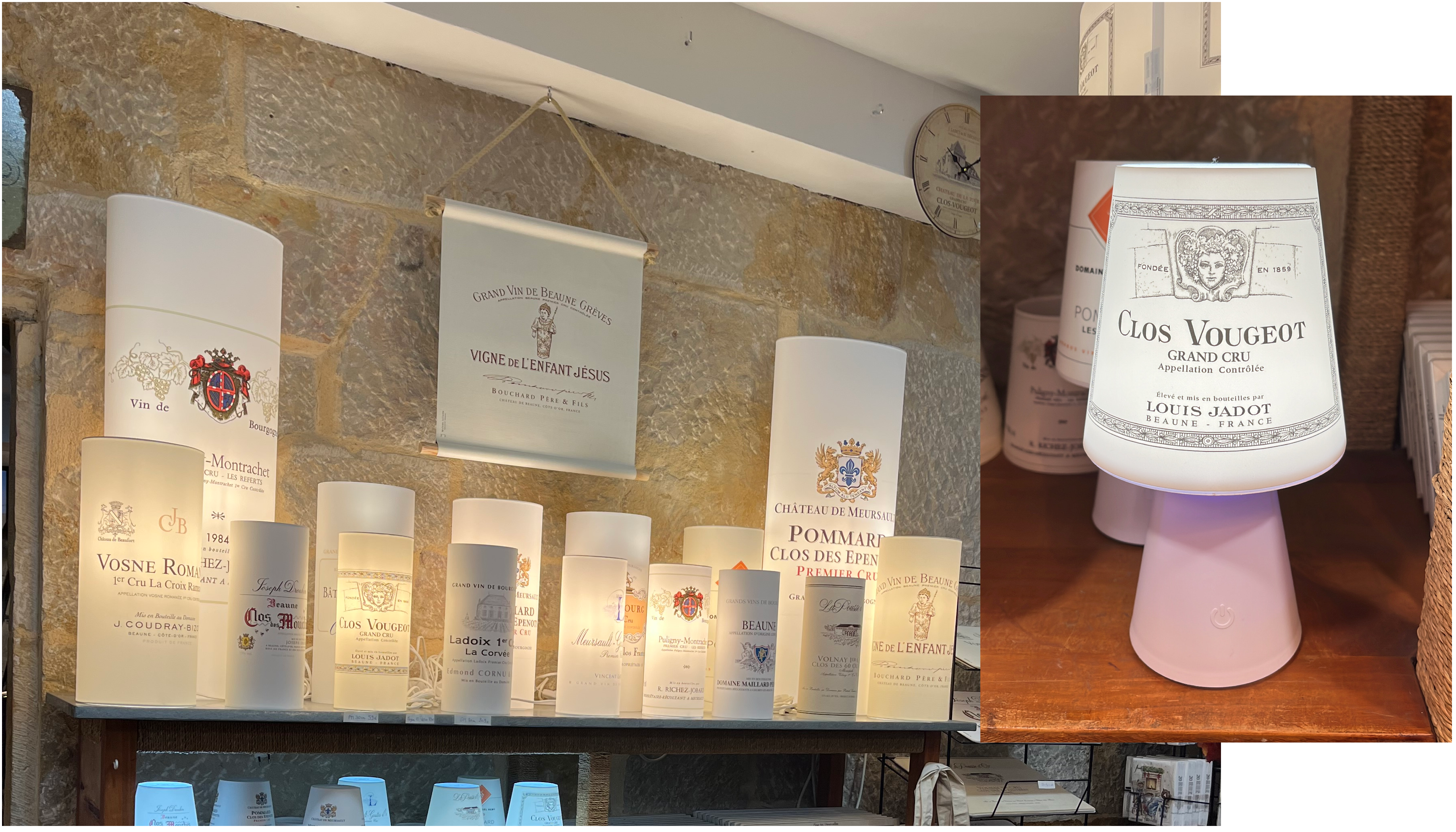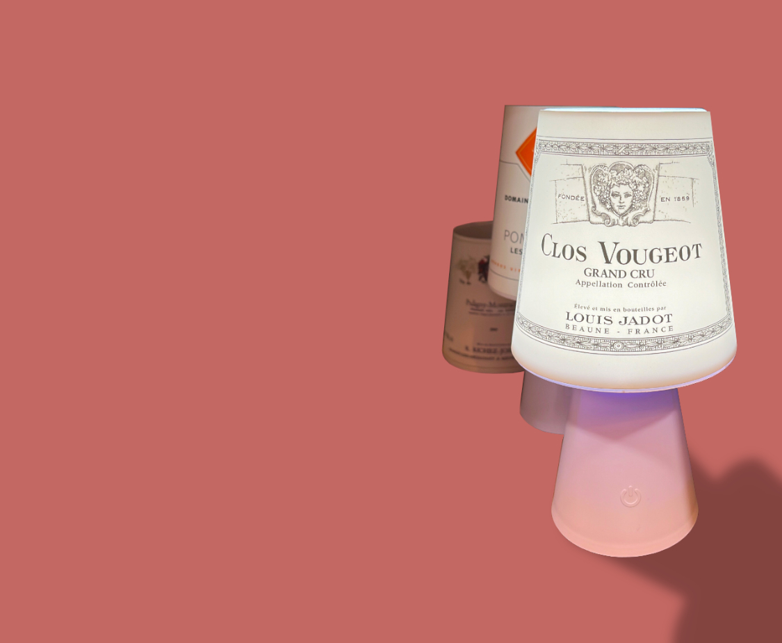 Illuminez votre intérieur avec nos lampes décoratives à l'effigie de véritables étiquettes de vin de Bourgogne ; création et exclusivité de la boutique.