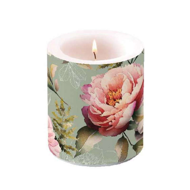 Bougie moyenne modèle "Composition de pivoines vertes"