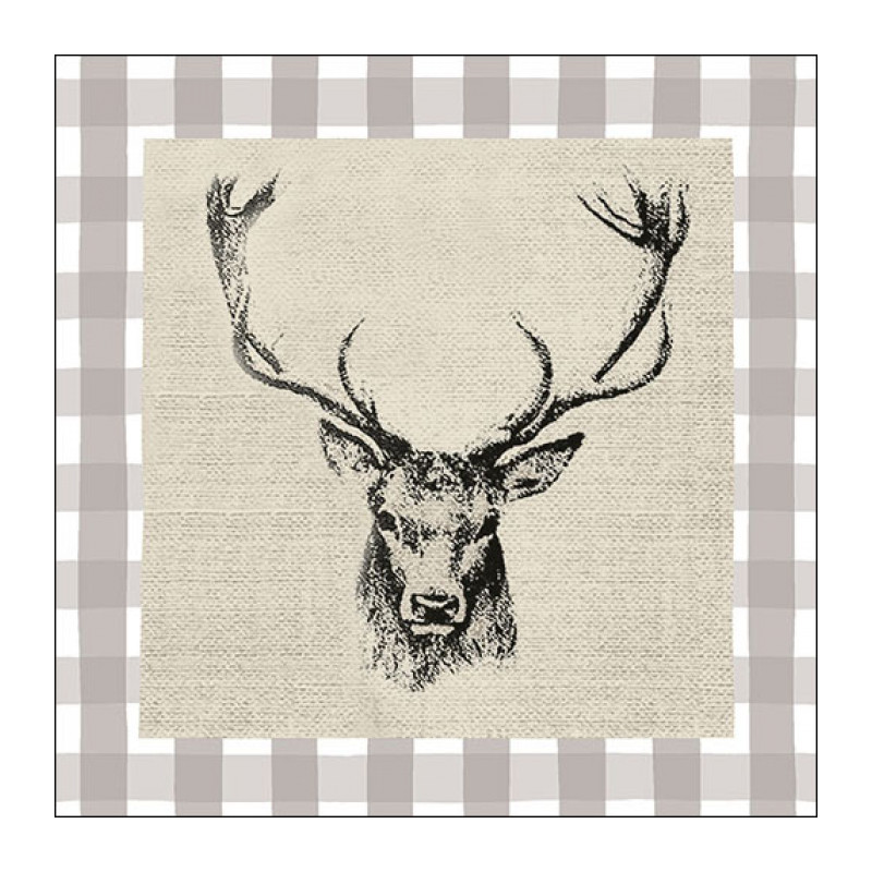Serviette en papier 33*33 "tête de cerf" fond brun