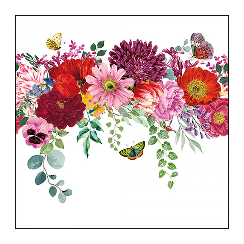 20 serviettes fleurs multicolores sur fond kraft papier recyclé 3 plis