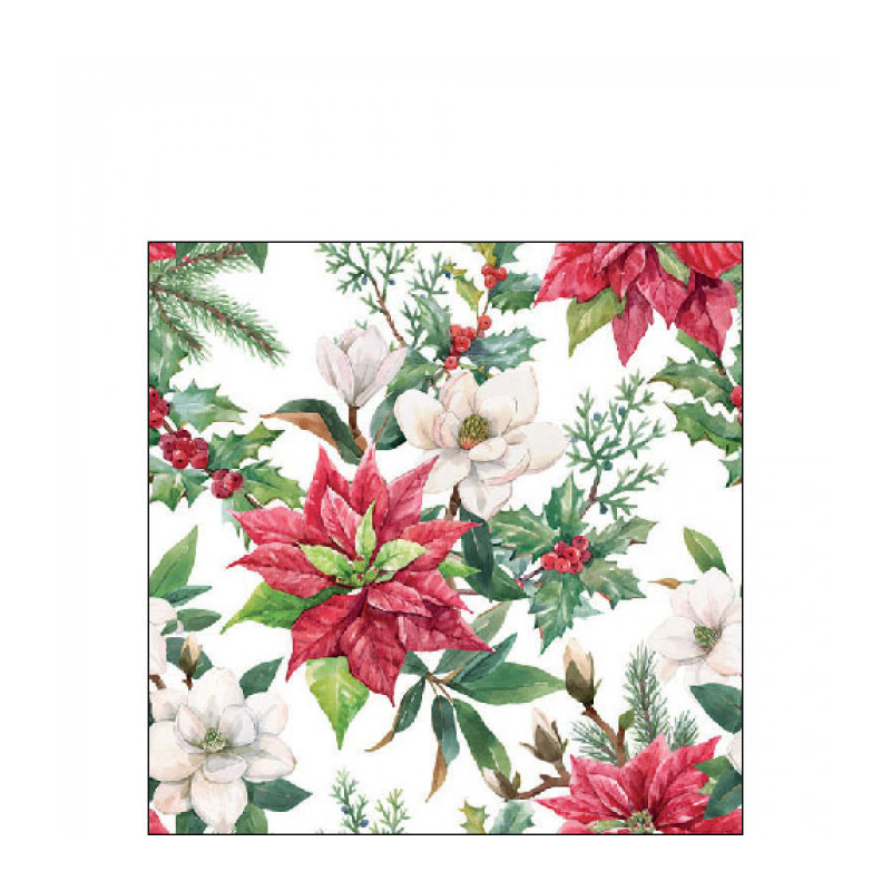 Serviettes en papier motif fleurs de Noel sur fond gold