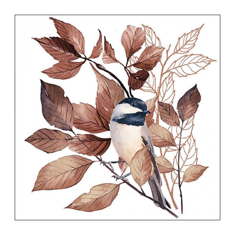 Serviette en papier 33*33 "Mésange sur feuillage"