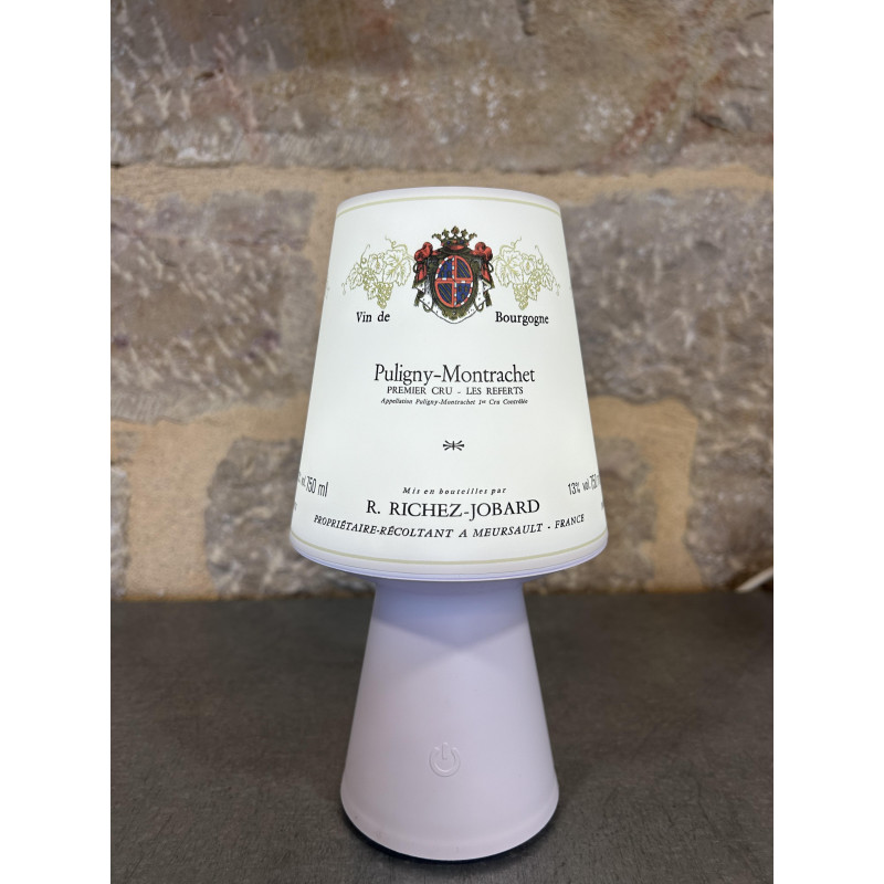 Illuminez votre intérieur et votre extérieur avec nos lampes LED nomades agrémentées d’un abat-jour à l’effigie de véritables étiquettes de vin de Bourgogne ; création et exclusivité de la boutique. Cette lampe légère et robuste saura vous accompagner là où vous en aurez besoin : jardin, terrasse, balcon, salon, lampe de chevet… Grâce à son autonomie de 24h !