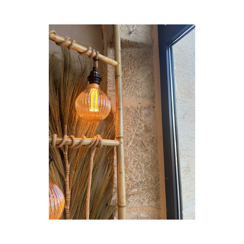 Ampoule décorative à filetage Led de couleur ambrée qui réchauffera votre intérieur avec sa lumière douce. Elle se suffit à elle-même avec une suspension douille vendu séparément.(réf 013382)