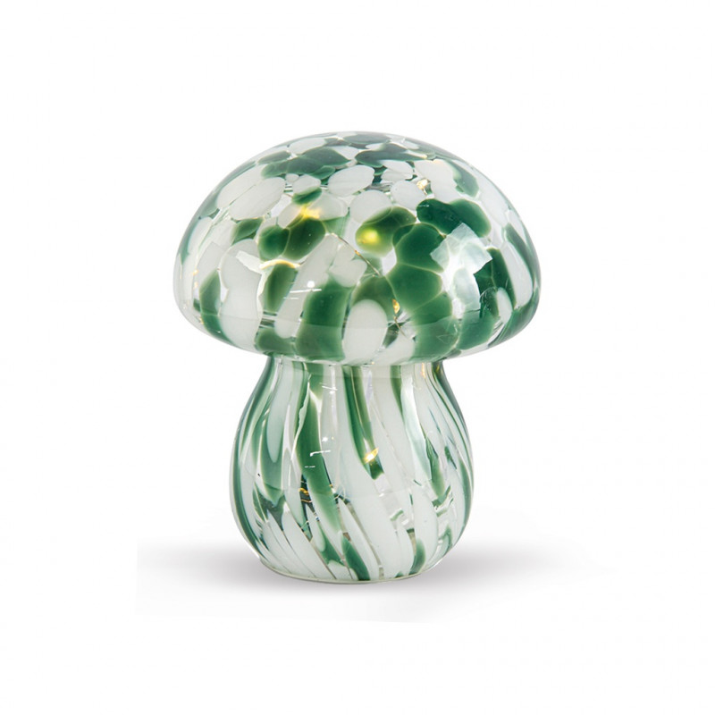 Lampe décorative champi tachetée verte à piles D13,5 H15,5cm