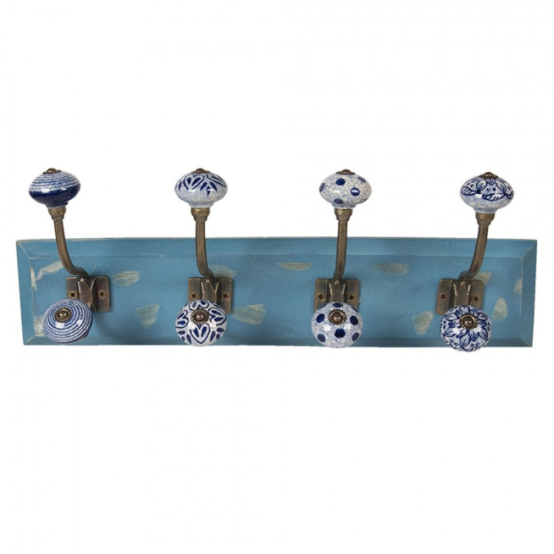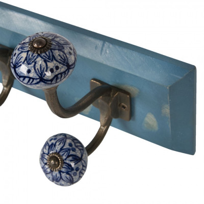 support bois de couleur bleue, crochets en fer et boule de suspension en céramique