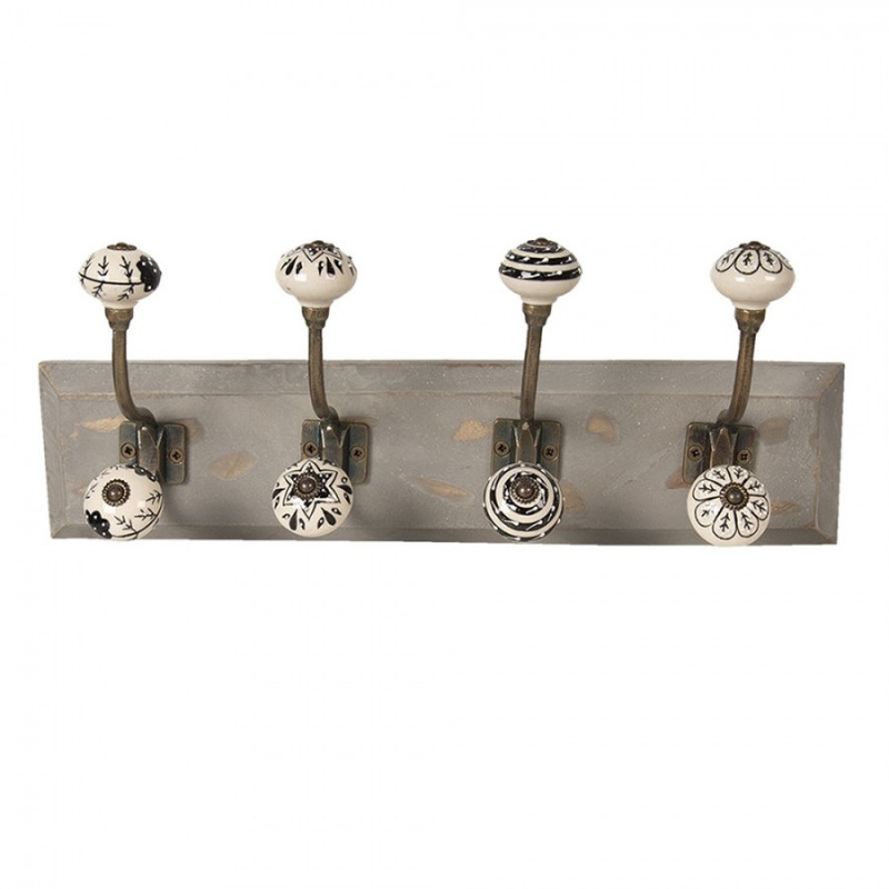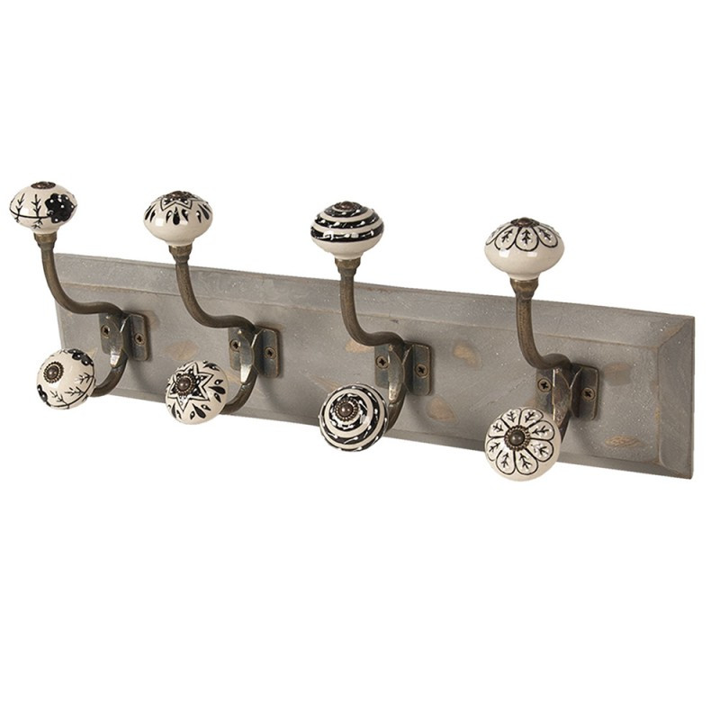 support bois de couleur grise, crochets en fer et boule de suspension en céramique