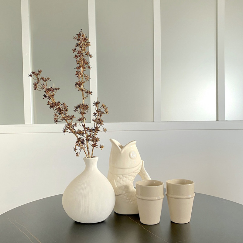 Un pichet décoratif est la nouvelle tendance ! Il est élégant et unique à sa manière. Vous pouvez y placer de jolies fleurs séchées ou simplement le laisser vide. Mais attention ! C’est un pichet décoratif et donc pas adapté à l’eau. Mélangez et associez différentes hauteurs pour créer un effet ludique. Quoi qu’il en soit, ce pichet décoratif est un incontournable dans votre maison !