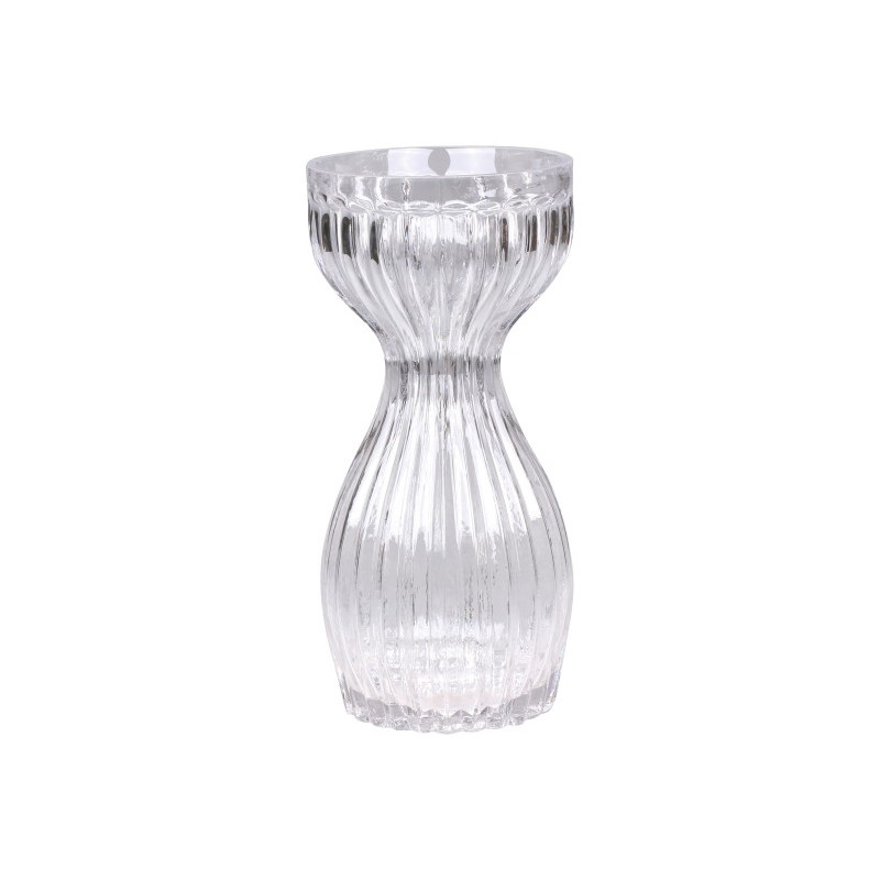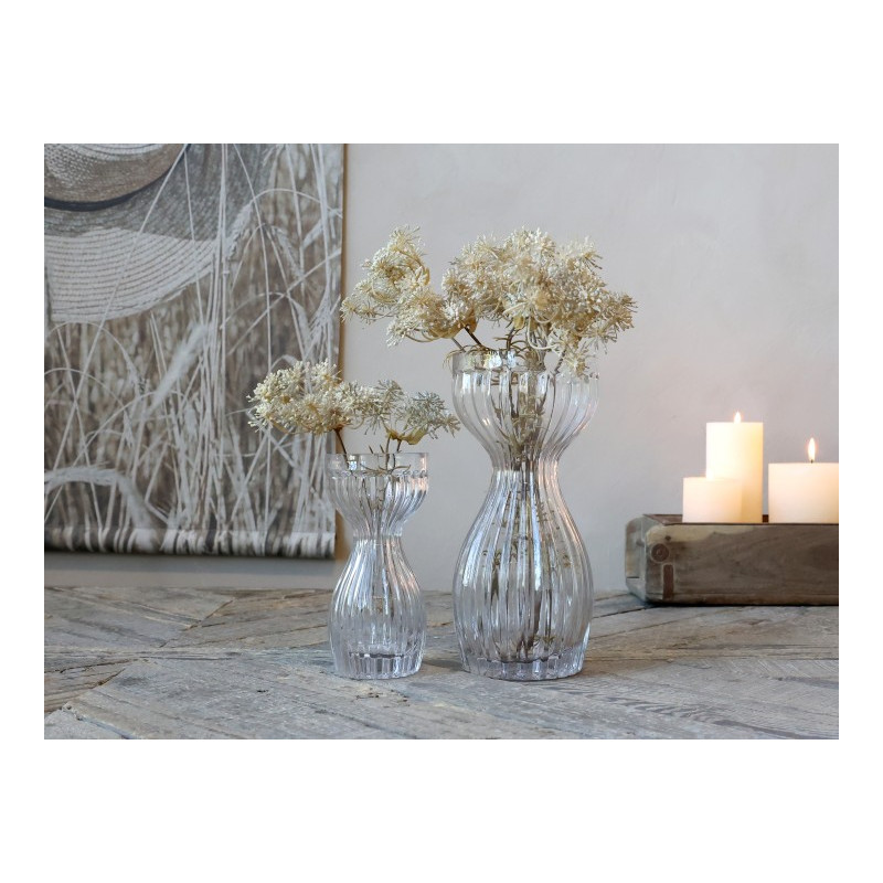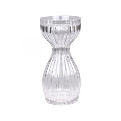 Vase en verre blanc transparent avec rainures ; le vase à posséder par excellence. Vous l'aiguayerai avec des fleurs fraiches ou séchées et il se mariera à merveille avec d'autre vase en verre de couleur.