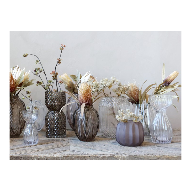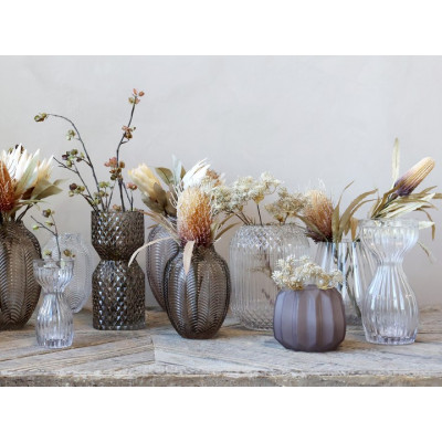 Très joli vase en verre transparent fin, ce qui lui donne une allure très chic. Il égayera vos tables lors d'évènement avec des fleurs fraiches ou séchées.