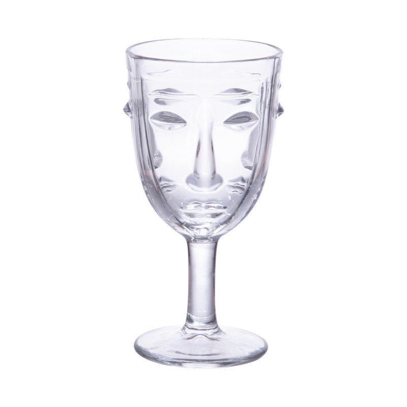 Ce verre à pied en verre transparent est conçu pour contenir jusqu'à 30 cl de votre boisson préférée. Avec ses dimensions de 16,5 cm de hauteur et 8,5 cm de diamètre, il offre la capacité idéale pour servir des vins fins, des cocktails raffinés, ou tout autre breuvage de votre choix. L'un des aspects les plus remarquables de ce verre à pied Sanjay est son motif en relief exquis d'un visage, qui ajoute une touche artistique et distinctive à votre expérience de dégustation.